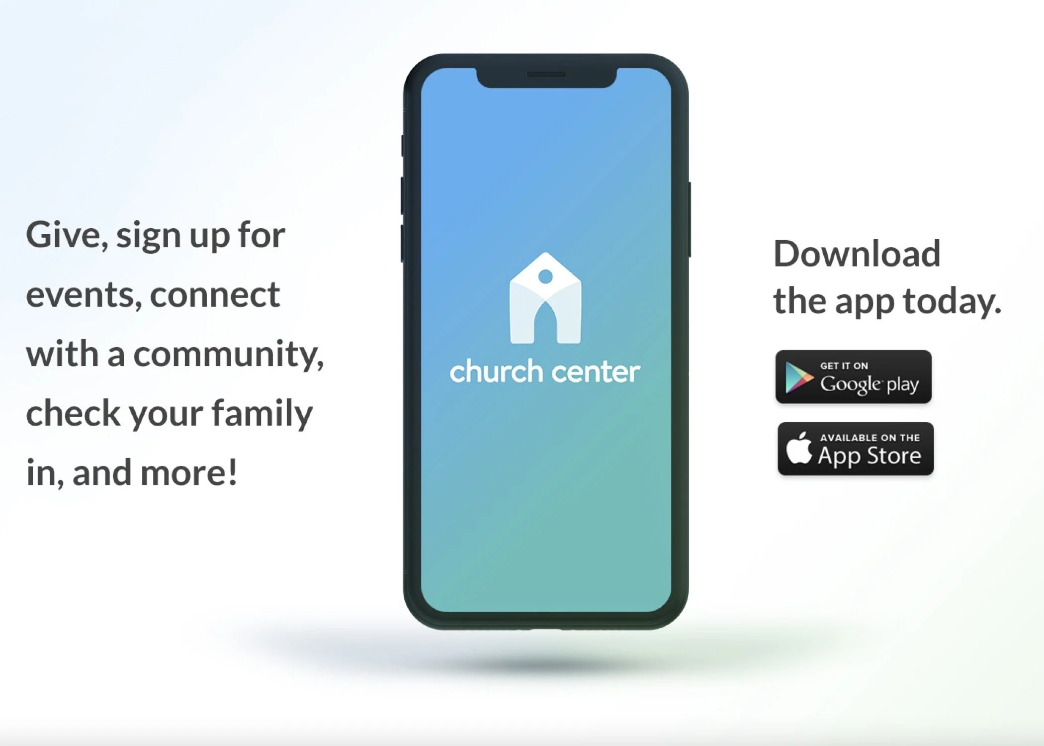 Church Center is a website/app for all things related to internal communication: small groups, church calendar, directory, etc. Request to be added by clicking here!